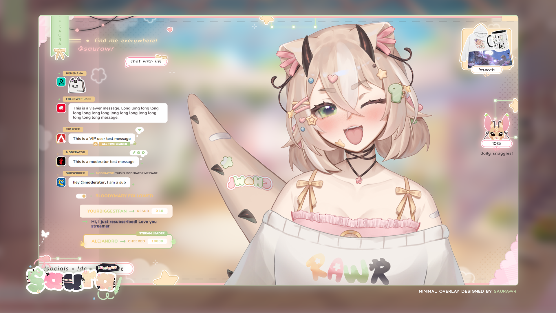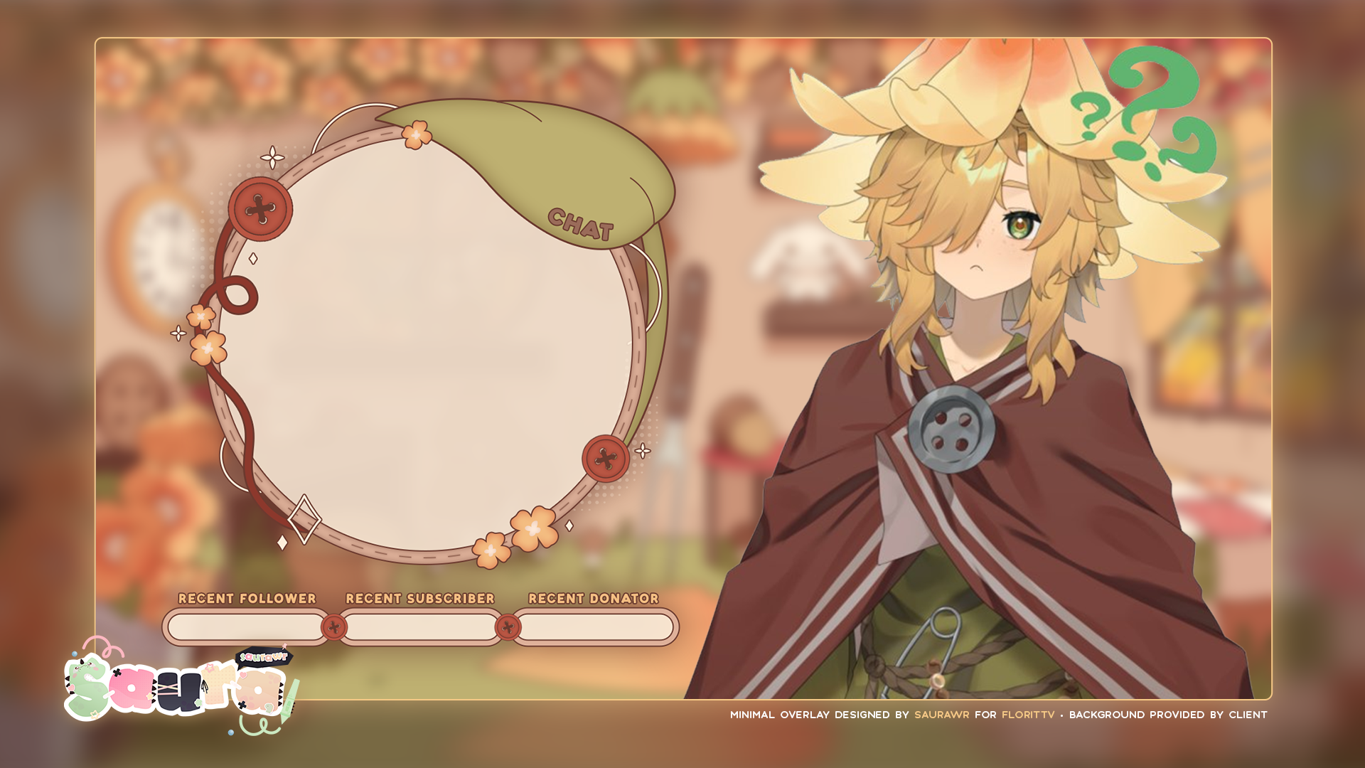 Amazing work, the attention to detail and colours was amazing and communication was given so that I knew when things were being worked on! Overall I love the work that Saura did on my overlays and they came out just as I imagined and more! She also shared an amazing chat box that matched well (I wouldn't have found it myself so I was so happy Saura cared to show them off to me)